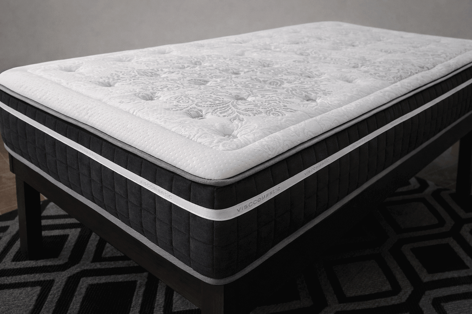 Colchón viscoelástico con tapa superior acolchada blanca de diseño capitoné y laterales en color gris oscuro, acabado premium para descanso confortable.Zenith Soft Colchón viscoelástico – Firmeza Media-Suave